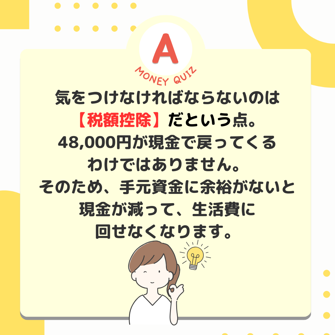 地域と、都市部との地域間格差を縮める目的として作られました。ふるさと納税では、「寄付金控除」という制度を活用しています。「寄付金控除」という制度を活用することで納税をした地域から返礼品をもらうことができます。控除される金額は寄付金から2,000円を引いた金額と決められています。例えば北海道に5万円のふるさと納税をした場合。大きな蟹が返礼品となっていて翌年の所得税や住民税から50,000円ー2,000円=48,000円が控除されます。2,000円で大きな蟹がもらえました。気をつけなければならないのは【税額控除】だという点。48,000円が現金で戻ってくるわけではありません。そのため、手元資金に余裕がないと現金が減って、生活費に回せなくなります。返礼品ばかりに目がいきがちですが、本来の目的も頭の片隅にいれて寄付納税をしたいものです。寄付できる上限金額は年収や家族構成、その他税額控除などにより変わります。まずは自分の寄付上限額を確認!