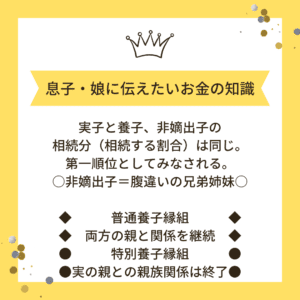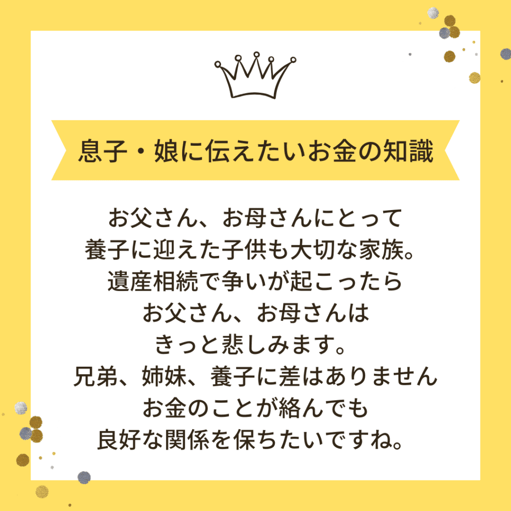 \子どもに伝えたいお金の知識マニア/【遺産相続 養子の法定相続分】そこに上下はありません。
