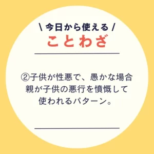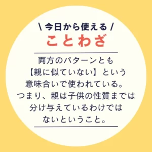 分け与えているわけではないということ。今日のことわざ ②のパターンを親は決して使うべきではないでしょう。子どもは子どもの性質で、私=親には関係ないという意味になりかねないので。