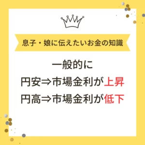 今日のお金の知識為替動向と金利今日のお金の知識一般的に円安⇒市場金利が上昇円高