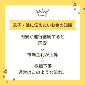 子どもたちに為替/株式相場、インフレ/デフレの関係性を理解しておいて欲しいです。