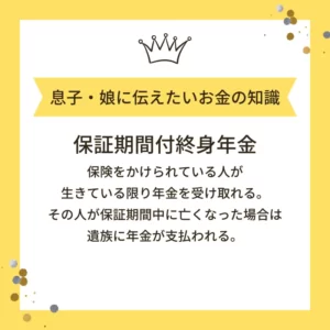 保証期間付き終身年金は私が死んでも家族が年金をもらえます。