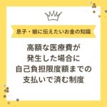 2023年5月21日 / 最終更新日時 : 2024年6月13日 life-tree おかねの知識 \子どもに伝えたいお金の知識マニア/【高額療養費の自己負担限度額】安心してね! 大切な家族のために。 メジャーな制度だと思いますがこの制度は必ず知っておいた方が良いです。今の世の中では、いつ窮地に陥るかわかりません。 ピンチの時にこの制度を使うことで生活を立て直しやすくなるかもしれません。こういう制 […]