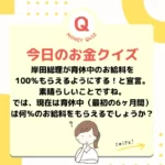 2023年5月26日 / 最終更新日時 : 2024年8月1日 life-tree おかねのクイズ \お金のクイズマニア/【少子化対策について】頑張れ!岸田首相。 異次元の少子化対策が進行中。妊娠+出産+初等+中等+高等教育までをすべてを無償にするなど。なんとしても実現してほしいです。 まだまだ育休が取りづらい世の中ですがこうした改善があれば少しずつ育休取得をする人が増えるかもしれ […]