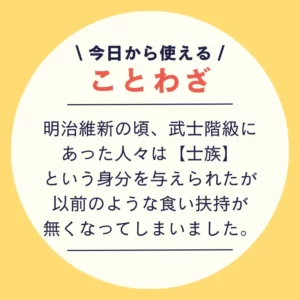 士族とは明治維新後、武士階級だった者に与えられた身分の呼称。