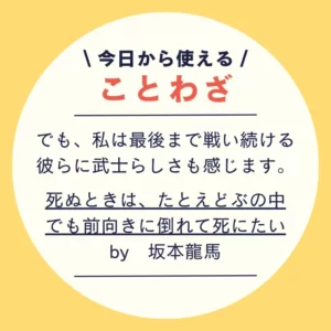 武士らしさも感じます。死ぬ時はたとえドブの中でも前向きに倒れて死にたい。by坂本龍馬今日のことわざ 今の時代に武士はいるか?